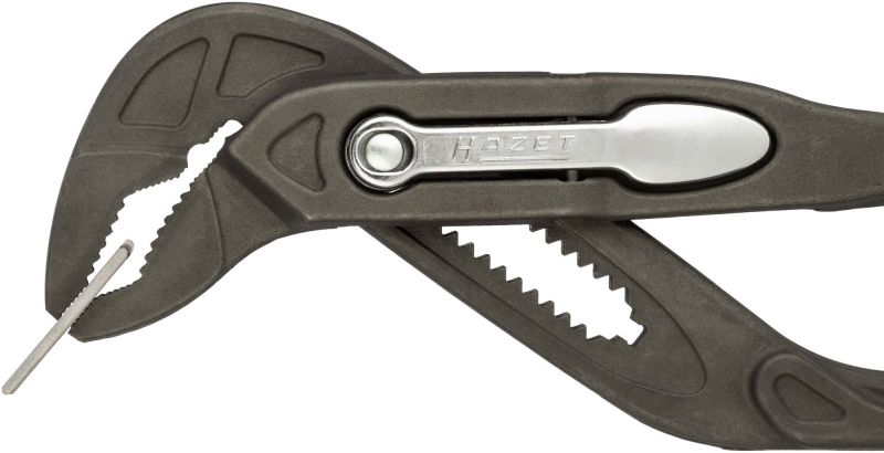 •Z szybką dźwignią: „Zawsze dobre dopasowanie — … bo•Zestaw 2-częściowy w mocnej materiałowej torbie ze szlufkąHAZET Szczypce uniwersalne 760-2 ∙ Długość: 260 mm ∙ DlaHAZET Zestaw szczypiec nastawnych ∙ uniwersalnych 760/2 ∙2‑częściowyosób praworęcznychwszystko zależy od dźwigni”•Liczba narzędzi: 2•Komfortowa szybka regulacja dzięki funkcji dźwigni Wskażi blokuj•Przestawianie bez obejmowania — obsługa jedną ręką•Dzięki maksymalnemu zakresowi rozwartości klucza 50 mm teszczypce zaliczane są do największych w swojej klasie•Zintegrowana blokada zapobiega obrażeniom ciała (np.zmiażdżeniom)•Uchwyty powlekane zanurzeniowo•DIN ISO 8976•Made in Germany•Wymiary: 260 mm•Masa netto (kg): 0.37 kg•Zakres mocowania: 50 mm•Możliwość bardzo szybkiego ustawienia przy zamkniętychramionach szczypiec w pozycji chwytu bezpośrednio naczęści — por. obsługa szczęk wielu zwykłych szczypiec bezfunkcji szybkiego ustawienia, w których ustawienie jestmożliwe tylko przy szeroko otwartych ramionach szczypiec.•Nowe szybkie przestawianie czyni obejmowanie całychszczypiec niepotrzebnym (w przypadku osób praworęcznych).•Intuicyjna, prosta, ergonomiczna i wygodna obsługa zapewniaszybkie ustawianie odpowiedniej szerokości rozwarcia bezwcześniejszego wypróbowywania.•Pewna obsługa i niezawodne działanie także w trudnodostępnych miejscach i trudnych przypadkach zastosowania.•Maksymalna rozwartość klucza do sześciokąta 50 mm,przydatna m.in. w obszarze instalacyjnym oraz do ruro profilu okrągłym o maks. ∅50 mm.•Dzięki temu bez problemu możliwa jest także obsługa gwintówBSW (British Standard Whitworth) w zakresie 1–1⁄8 =rozwartość klucza 47,2 mm.•Najwyższa, przewyższająca wymagania norm jakośćmonitorowana przez wewnętrzny system kontroli jakości•Bardzo twarde uzębienie szczęk dzięki dodatkowemuhartowaniu indukcyjnemu (wysoka trwałość) i przesunięciuzębów w kierunku przeciwnym do obrotu (większa siła)•Dokładne blokowanie dzięki wyciętemu laserowo uzębieniu•Wiele ściśle stopniowanych ustawień (pozycje zatrzaskowe)zapewniających idealne punkty chwytu przy każdejrozwartości szczęk•Ulepszany cieplnie sworzeń, wyprodukowany w ramachzaawansowanego technologicznie procesu metalurgii proszkówmetodą formowania wtryskowego M.I.M. (Metal InjectionMoulding)•Dźwignia regulacyjna z wysokiej jakości metalu z wytrzymałąpowierzchnią zapewniającą wysoką trwałość•Dobra ochrona antykorozyjna szczypiec dzięki fosforanowaniucynkowemu powierzchni (bez CrVI = spełnia najwyższe wymogizdrowotne i środowiskowe).•Ergonomiczna, szeroka, lekko zaokrąglona garda zapewniadobre rozłożenie nacisku na uchwycie.